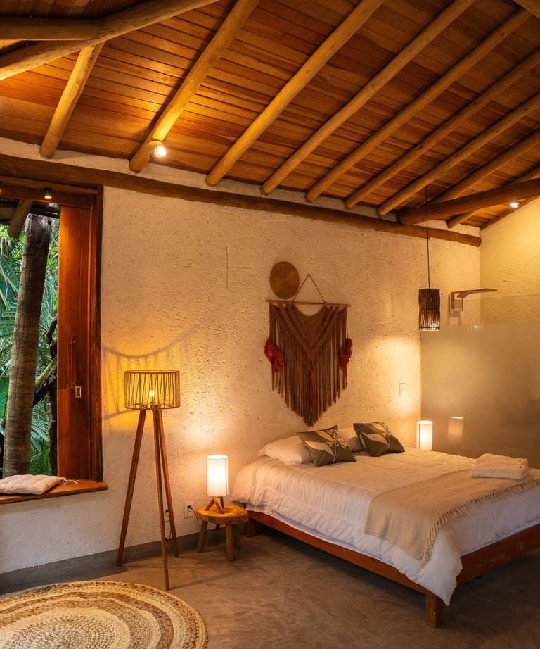 Com uma estética eco chic, oferece 4 bangalôs únicos, cada um proporcionando uma experiência autêntica de exclusividade e serenidade.