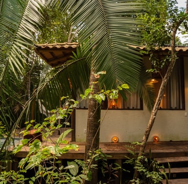 Frente para árvores nativas e babaçus com varanda e piscina privativa aquecida, equipados com cama queen-size, tv, ar, frigobar, amplo banheiro, secador de cabelo, rede king, com área privativa um lugar para descansar e conectar a natureza.